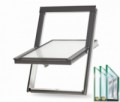 RoofLITE + TRIO PVC 55x78 cm plastové střešní okno s trojitým sklem, které je odolné proti vlhkosti. Navíc má i díky trojsklu Ug=0,8 skvělé tepelně izolační parametry s koeficientem celého okna Uw=1,1.