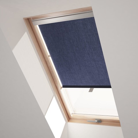 Zastiňující modré rolety pro střešní okna Fakro 55x78 cm příjemně filtrují dopadající světlo. Praktické a nenákladné řešení pro ztlumení světla dopadajícího do interiéru.