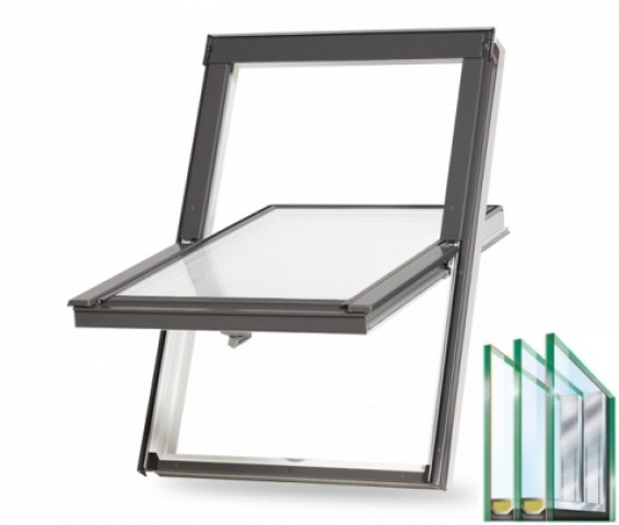 RoofLITE + TRIO PVC 78x118 cm plastové střešní okno s trojitým sklem, které je odolné proti vlhkosti. Navíc má i díky trojsklu Ug=0,8 skvělé tepelně izolační parametry s koeficientem celého okna Uw=1,1.